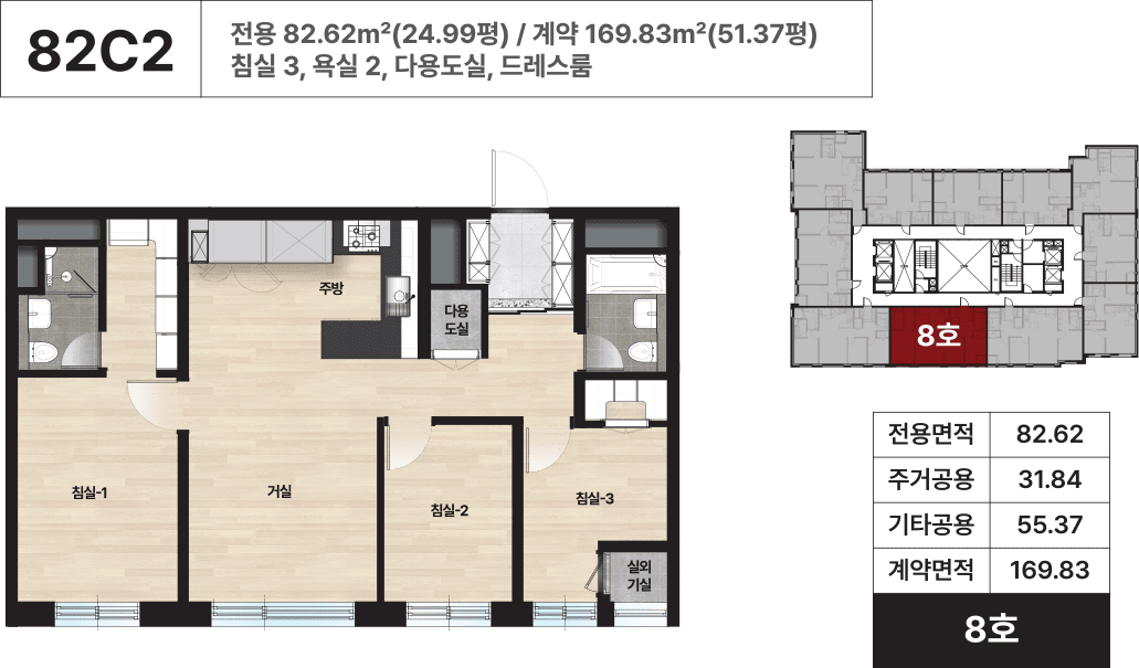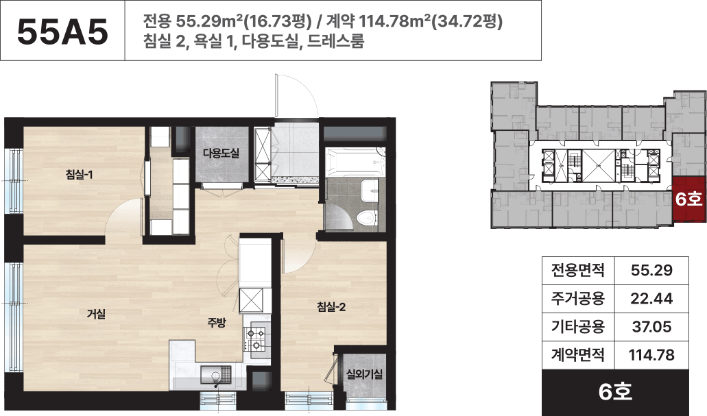 | 세대수 | 오피스텔 143호, 공동주택(아파트) 55세대, 근린생활시설 16호, 운동시설 1호 |